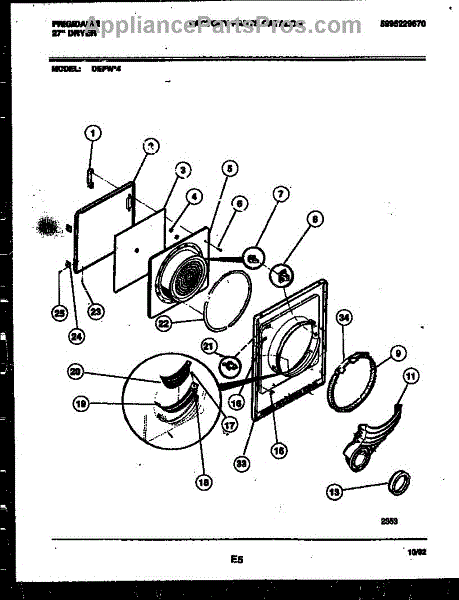 Parts for Frigidaire DEFW4: 03 - Door Parts