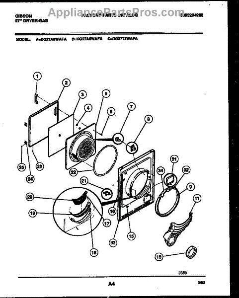 Parts for Frigidaire DG27A5WAFA: 03 - Door Parts