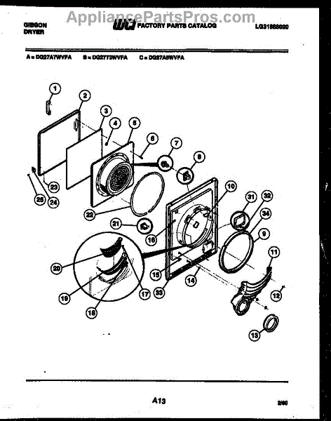 Parts for Frigidaire DG27A5WVFA: 03 - Door Parts