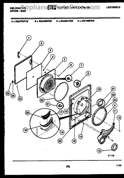 Parts for Frigidaire DGA500F2W: 03 - Door Parts