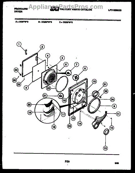 Parts for Frigidaire DGSFW0: 03 - Door Parts