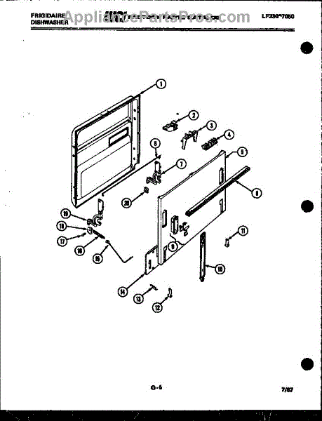Parts for Frigidaire DWSF500EW: 02 - Door Parts