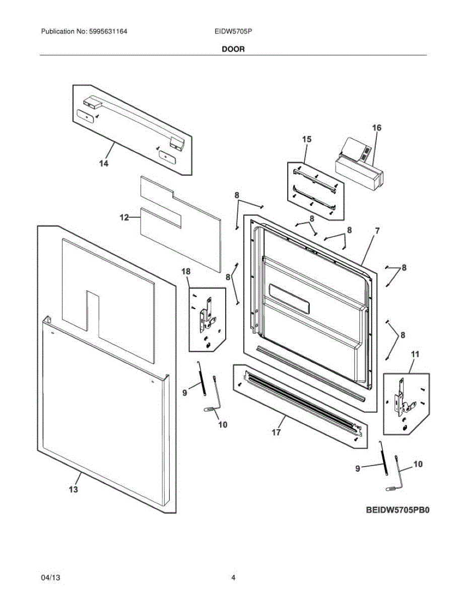 Replacement spring and cable assembly for dishwasher doors. Balances door opening and closing. Needed when cable breaks, spring snaps, or door drops.