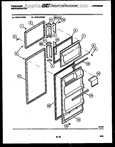 Parts for Frigidaire FCD12TFL1: 02 - Door Parts