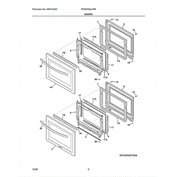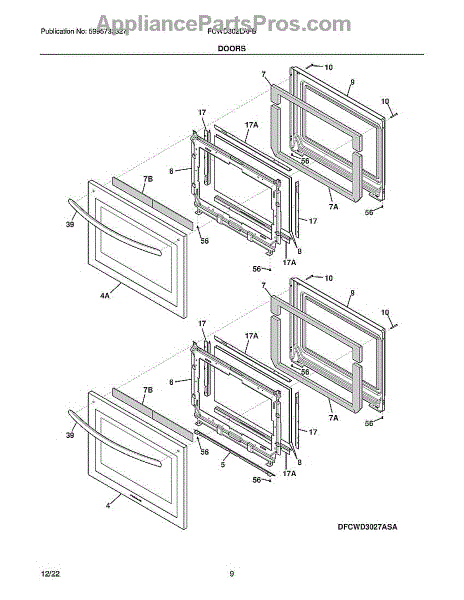 Complete refrigerator freezer door assembly replaces damaged or dented outer doors to restore proper sealing. Includes outer panel, trim, and mounting hardware.