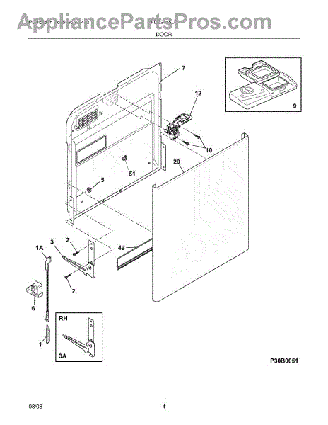 The Side Mount Kit is an OEM replacement part for Frigidaire dishwashers. It contains mounting brackets, screws, and other hardware required to securely install the dishwasher against cabinetry in a side-by-side configuration. Proper attachment is necessary for stability and safety during operation.