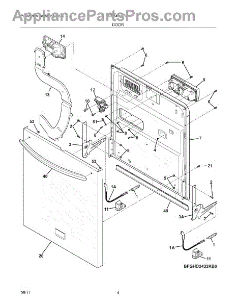 The Door Cable is an OEM part for Frigidaire dishwashers. It is a component that connects the dishwasher door to the frame, controlling movement when accessing the tub interior.