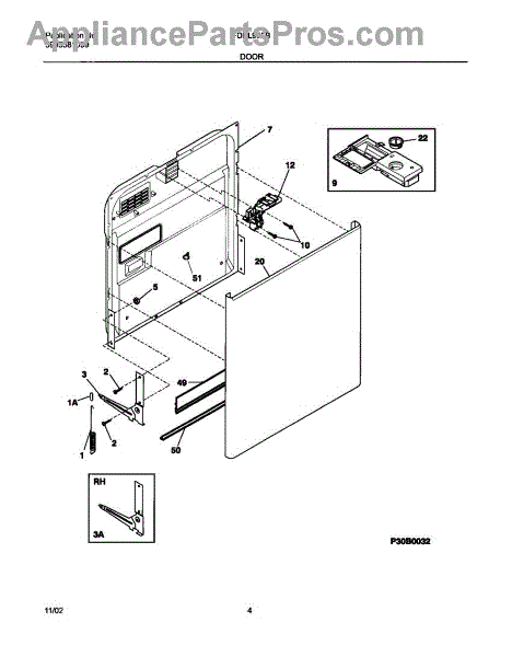 The Door Spring is an OEM part for Frigidaire dishwashers. It provides smooth opening and closing of the dishwasher door by maintaining tension and balance. This spring ensures that the door moves gently and stays in place when opened, preventing slams that could lead to damage or injury.