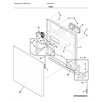 The Inner Door Panel is an OEM part for Frigidaire dishwashers. It is an internal door component located inside the outer door panel. The inner door panel is responsible for providing structure and rigidity to the interior of the dishwasher door.