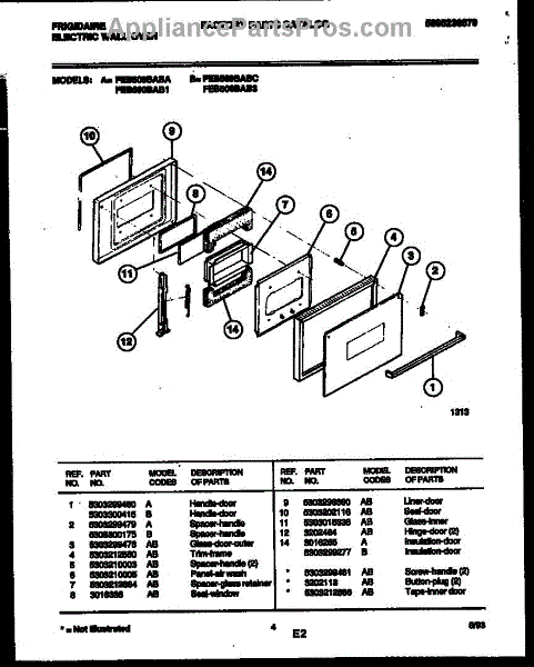 Parts for Frigidaire FEB500BABC: 03 - Door Parts