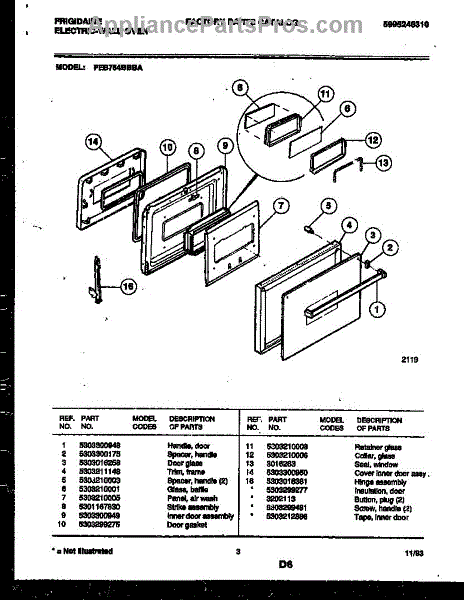 Parts for Frigidaire FEB754BBBA: 03 - Door Parts