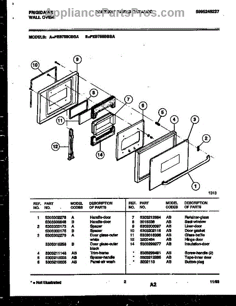 Parts for Frigidaire FEB755BBBA: 02 - Door Parts