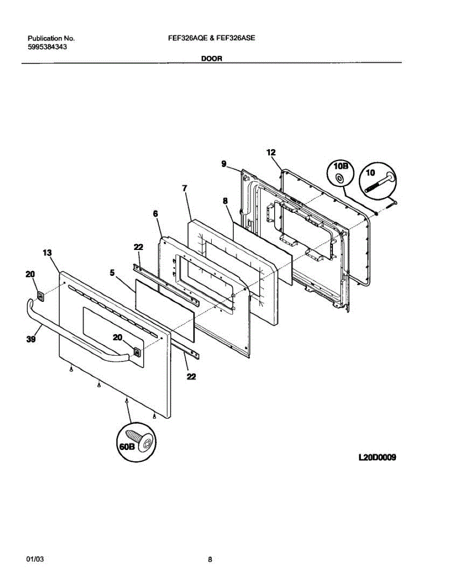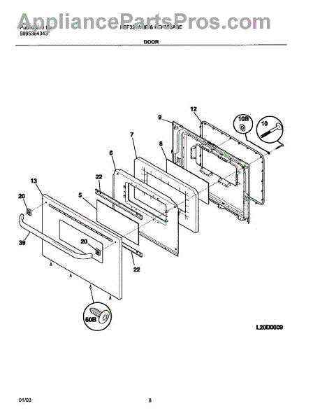 Parts for Frigidaire FEF326AUE: 09 - Door Parts