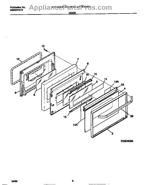 Parts for Frigidaire FEF350BAWF: 05 - Door Parts