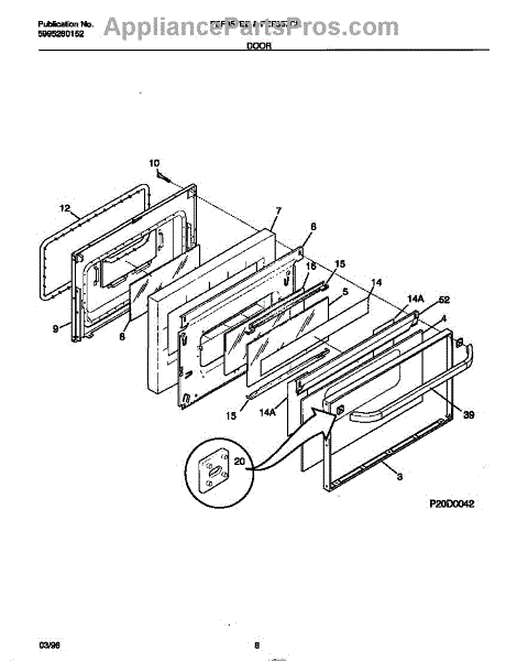 Parts for Frigidaire FEF357BEWA: 05 - Door Parts