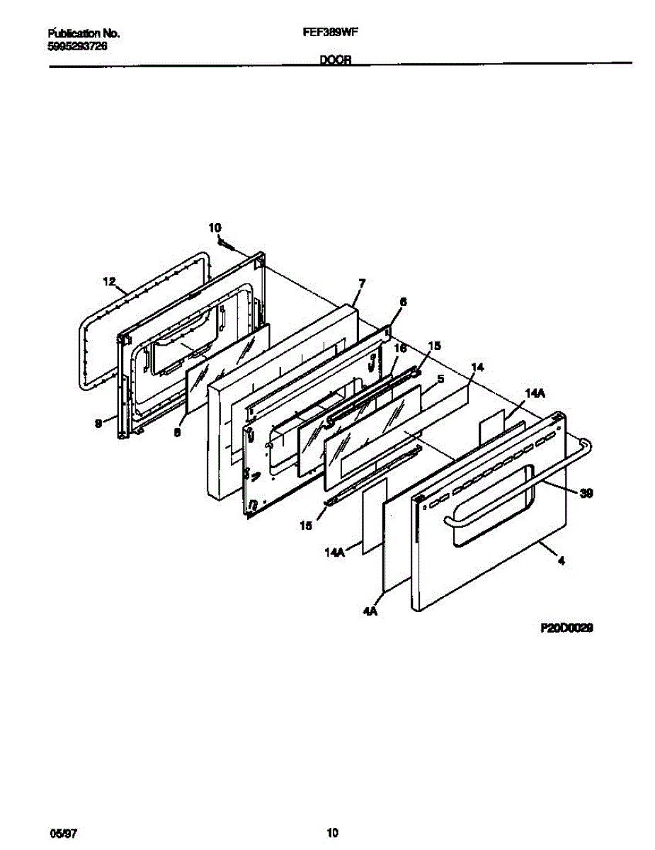 Parts for Frigidaire FEF389WFSA: 05 - Door Parts