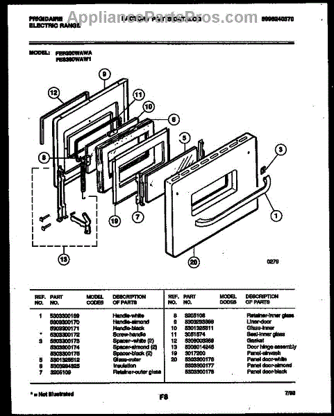Parts for Frigidaire FES300WAB1: 04 - Door Parts