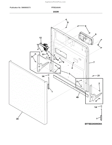 Parts for Frigidaire FFBD2404NB9C: Door Parts