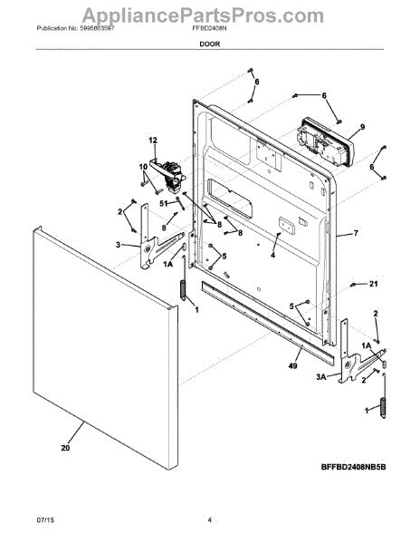 Balances and supports the dishwasher door for smooth opening and closing. Replace if broken, worn, or causing the door to drop too quickly or hang loose.