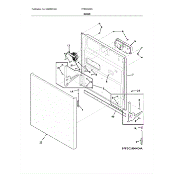 This replacement dishwasher door forms the hinged front of the tub. Replacing a bent or damaged door restores proper alignment and latching so cycles can run correctly and the wash chamber remains properly contained.