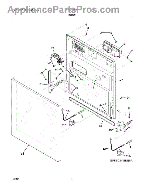 The Frigidaire handle and latch assembly is an OEM replacement part responsible for securing and latching the dishwasher door when it is closed for a wash cycle. This part is typically located on the front panel of the dishwasher, near the top of the door. It ensures that the dishwasher door remains securely closed during operation, preventing water and steam from escaping the interior.