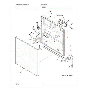 The Door Hinge Kit is an OEM replacement part for Frigidaire dishwashers. Located on the left and right side of the dishwasher doorway, the hinges are responsible for supporting the weight of the dishwasher door and facilitating smooth opening and closing. The kit is composed of two brackets and all of the extra hardware needed to install it on a dryer. Causes of failure include wear and tear of hinge parts over many door openings and closings, damage due to overload or misuse, and deterioration of hinge components exposed to moisture. Symptoms include: