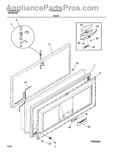 The Door switch is an OEM replacement part for Frigidaire refrigerators. This part turns the light on/off as the door opens and closes. Causes of a faulty door switch include normal wear of electrical contacts from repetitive on/off cycles. Moisture exposure may potentially corrode internal connections. Symptoms of a bad light/switch include:
