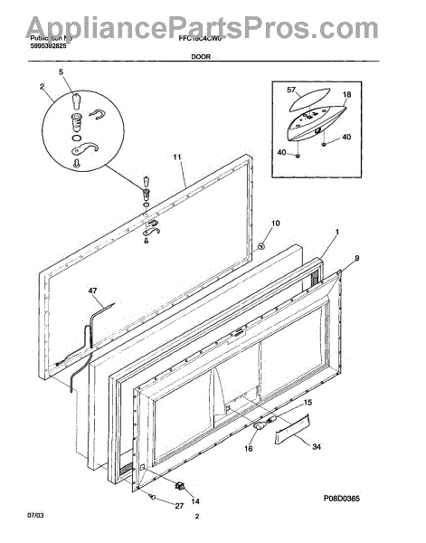 The Door switch is an OEM replacement part for Frigidaire refrigerators. This part turns the light on/off as the door opens and closes. Causes of a faulty door switch include normal wear of electrical contacts from repetitive on/off cycles. Moisture exposure may potentially corrode internal connections. Symptoms of a bad light/switch include: