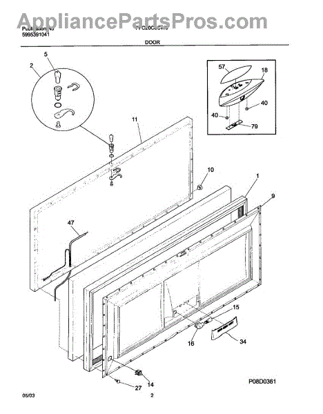 The Door switch is an OEM replacement part for Frigidaire refrigerators. This part turns the light on/off as the door opens and closes. Causes of a faulty door switch include normal wear of electrical contacts from repetitive on/off cycles. Moisture exposure may potentially corrode internal connections. Symptoms of a bad light/switch include: