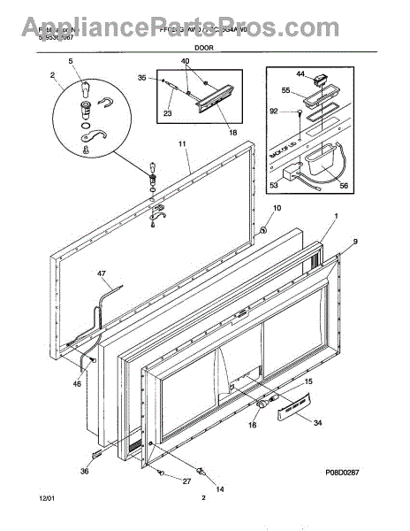 The Door switch is an OEM replacement part for Frigidaire refrigerators. This part turns the light on/off as the door opens and closes. Causes of a faulty door switch include normal wear of electrical contacts from repetitive on/off cycles. Moisture exposure may potentially corrode internal connections. Symptoms of a bad light/switch include: