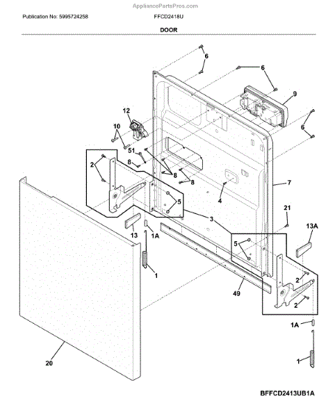 The Inner Door Panel is an OEM part for Frigidaire dishwashers. It is an internal door component located inside the outer door panel. The inner door panel is responsible for providing structure and rigidity to the interior of the dishwasher door.