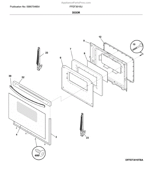 The Door Handle is an OEM part for Frigidaire ovens. This handle is designed to provide a secure grip for opening and closing the oven door. It is essential for safely accessing the oven's interior, ensuring convenience and ease of use while cooking or cleaning.