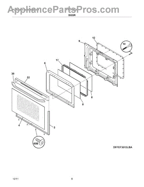 Inner glass panel for range oven doors. Replace this part if your existing glass is cracked, shattered, or broken. Installs inside the door frame.