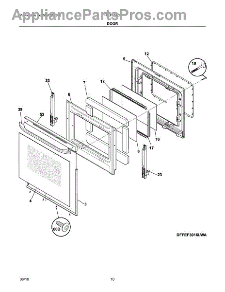 Parts for Frigidaire FFEF3016LWB: 09 - Door Parts