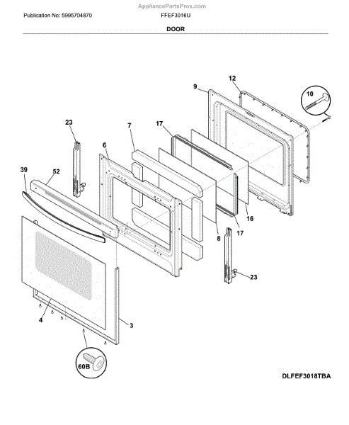 The Door Handle is an OEM part for Frigidaire ovens. This handle is designed to provide a secure grip for opening and closing the oven door. It is essential for safely accessing the oven's interior, ensuring convenience and ease of use while cooking or cleaning.