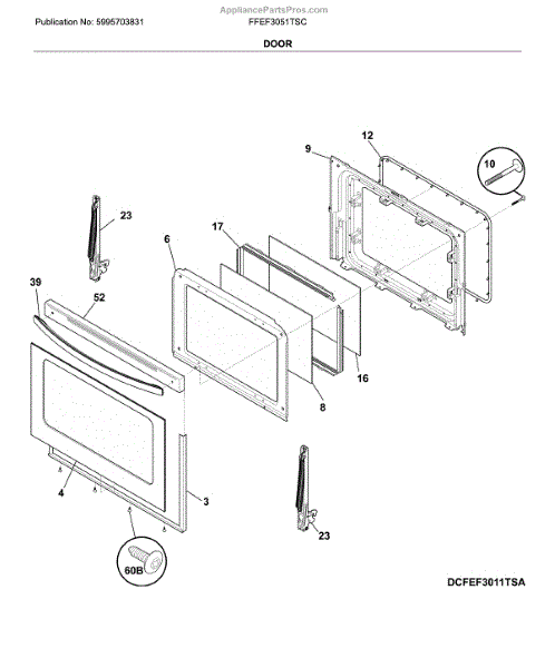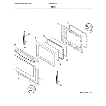 Parts for Frigidaire FFEF3051TSC: Door Parts