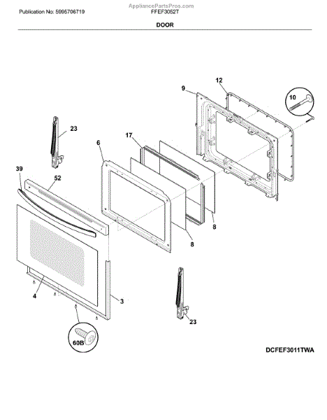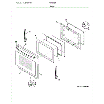 The Door Handle is an OEM part for Frigidaire ovens. This handle is designed to provide a secure grip for opening and closing the oven door. It is essential for safely accessing the oven's interior, ensuring convenience and ease of use while cooking or cleaning.