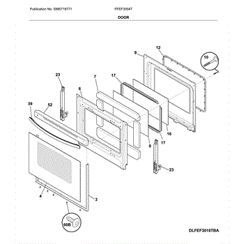 The Door Handle is an OEM part for Frigidaire ovens. This handle is designed to provide a secure grip for opening and closing the oven door. It is essential for safely accessing the oven's interior, ensuring convenience and ease of use while cooking or cleaning.
