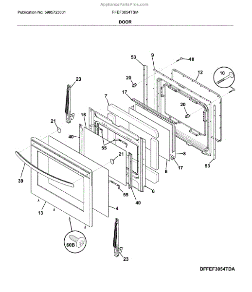 Parts for Frigidaire FFEF3054TSM: Door Parts