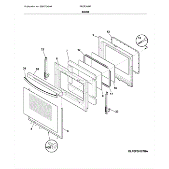 The Door Handle is an OEM part for Frigidaire ovens. This handle is designed to provide a secure grip for opening and closing the oven door. It is essential for safely accessing the oven's interior, ensuring convenience and ease of use while cooking or cleaning.