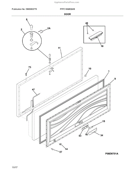 The Freezer Door Key is an OEM replacement part for Frigidaire refrigerators. This small but essential component is designed to securely lock the freezer door, preventing accidental openings or unauthorized access.