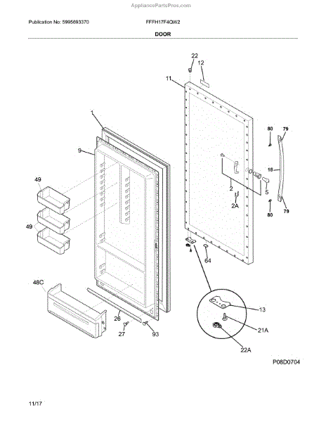 The Freezer Door Key is an OEM replacement part for Frigidaire refrigerators. This small but essential component is designed to securely lock the freezer door, preventing accidental openings or unauthorized access.