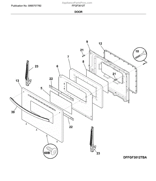 Parts for Frigidaire FFGF3012TBB: Door Parts