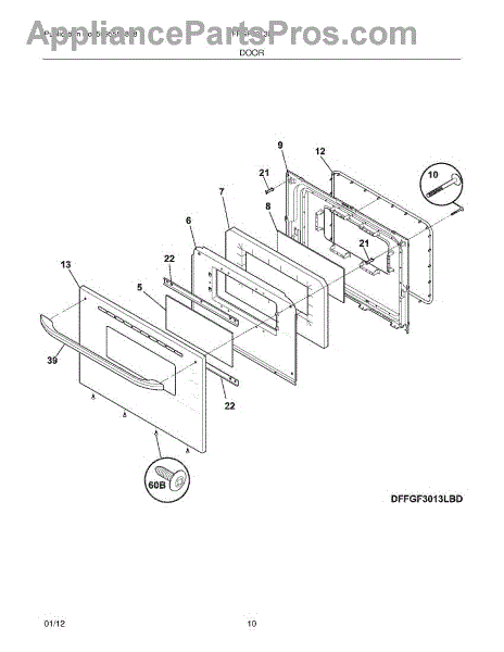 Parts for Frigidaire FFGF3013LWD: 11 - Door Parts