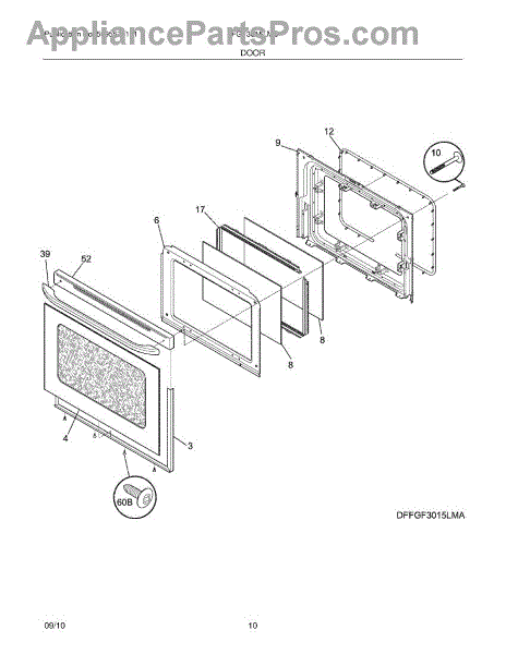 Parts for Frigidaire FFGF3015LMC: 11 - Door Parts