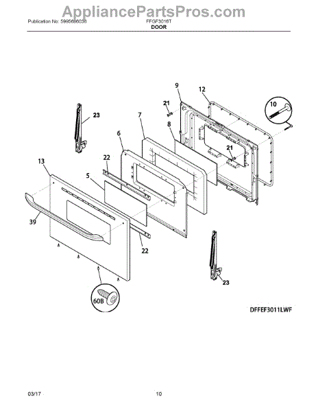 The Screw is an OEM part for Frigidaire ovens. This screw secures the oven door handle to the door, ensuring it remains firmly attached and stable during use.