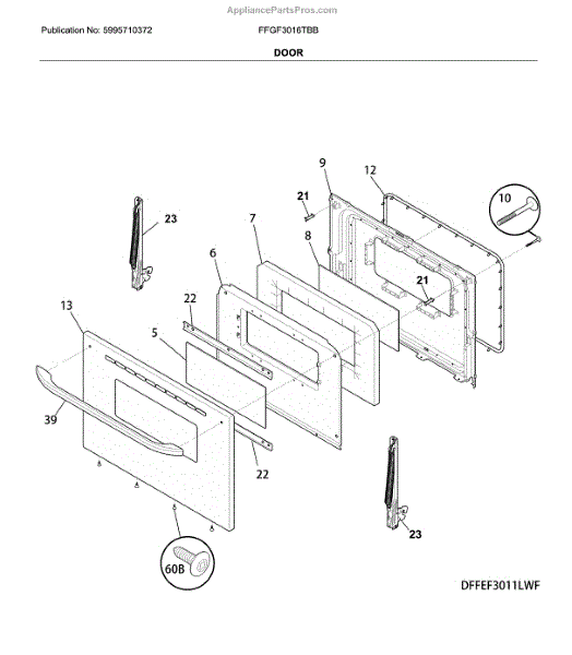 The Screw is an OEM part for Frigidaire ovens. This screw secures the oven door handle to the door, ensuring it remains firmly attached and stable during use.
