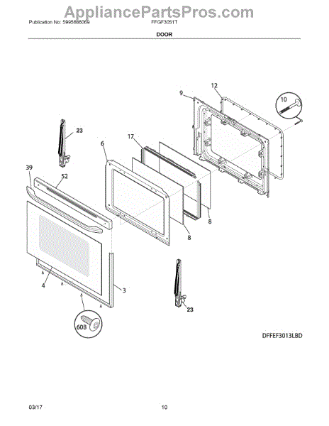 The Door Handle is an OEM part for Frigidaire ovens. This handle is designed to provide a secure grip for opening and closing the oven door. It is essential for safely accessing the oven's interior, ensuring convenience and ease of use while cooking or cleaning.