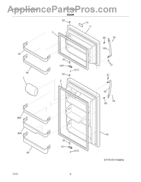 Parts for Frigidaire FFHT21X6MS0: 03 - Door Parts
