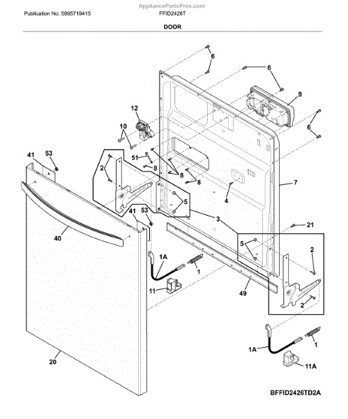 The Inner Door Panel is an OEM part for Frigidaire dishwashers. It is an internal door component located inside the outer door panel. The inner door panel is responsible for providing structure and rigidity to the interior of the dishwasher door.
